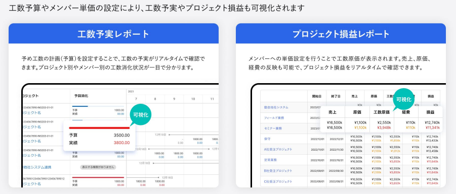 プロジェクトや案件ごとに、「誰が・どの作業に・どれくらい動いたか」というリアルな稼働時間を正確に可視化(グラフ化など)することです。